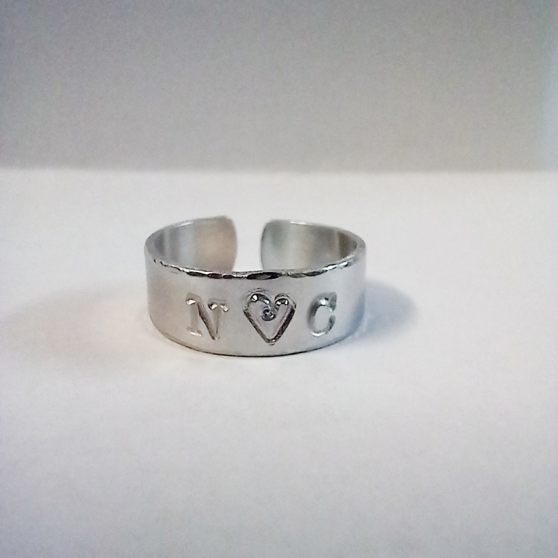 La taille de cette bague peut être ajustée car l'aluminium est un métal souple. Au cas où vous auriez besoin de resserrer ou d'élargir l'anneau, faites-le toujours délicatement en travaillant avec les deux mains sur les côtés ouverts.