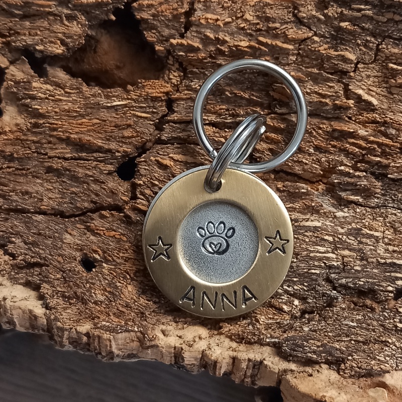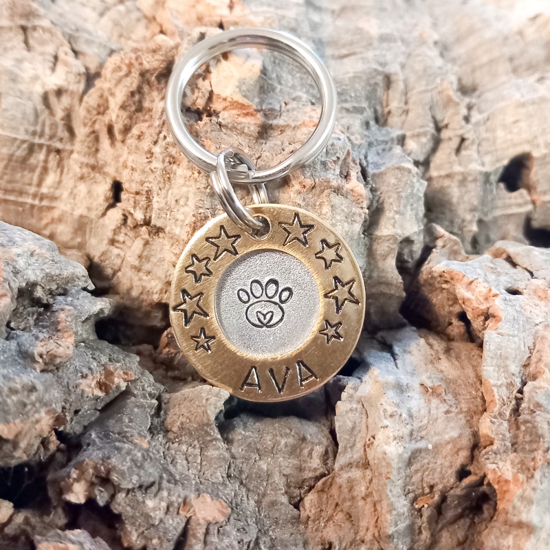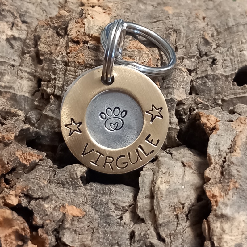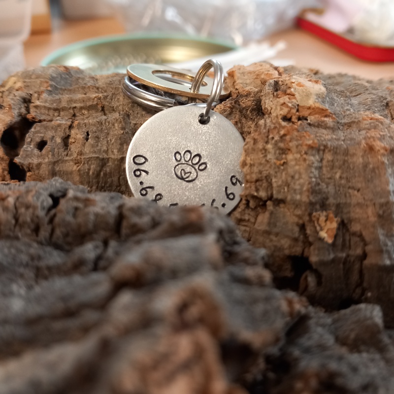 Chaque médaille est gravée à la main, pas à la machine, ce qui rend chaque pièce vraiment unique. La police est adaptée au nombre de lettres du nom de votre animal et à la taille de la médaille pour un résultat harmonieux.