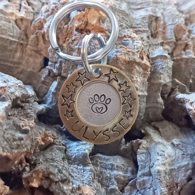 La médaille est livrée avec son anneau pour être directement accrochée au collier de votre animal.