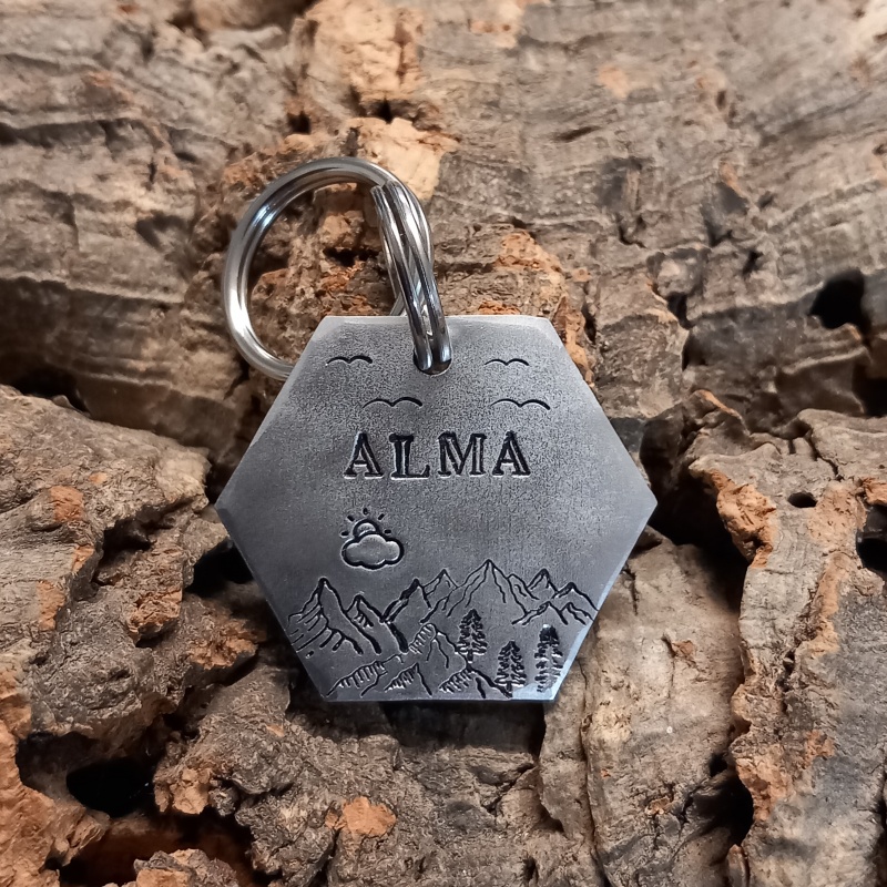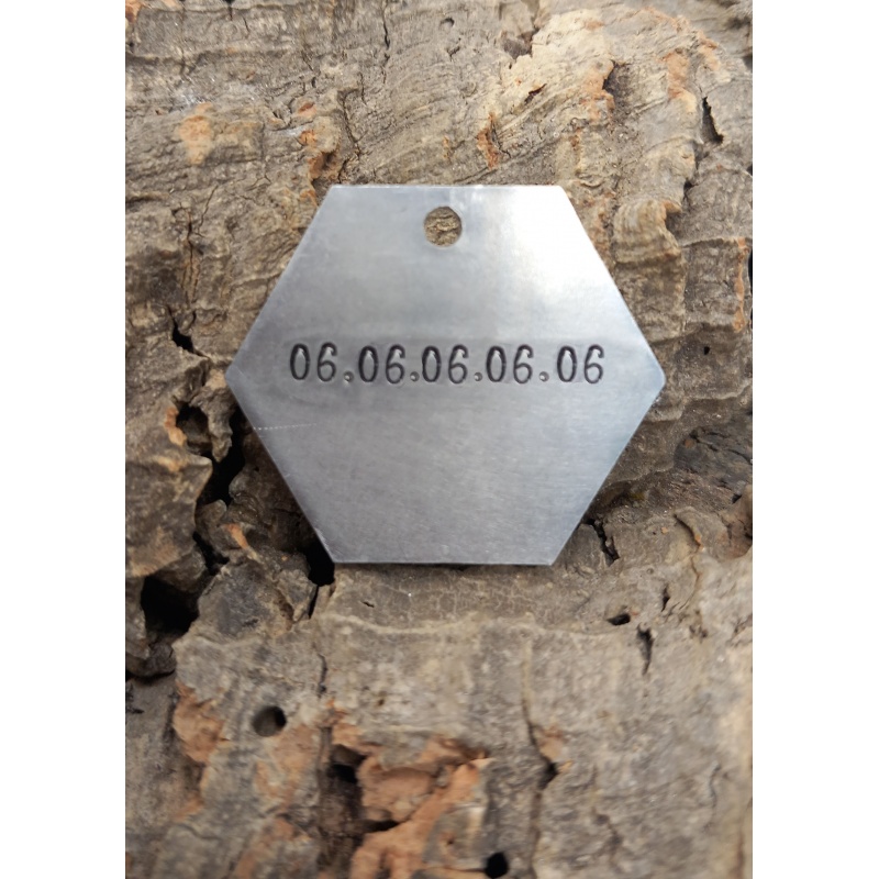 Cette médaille d'identité hexagonale personnalisée pour chien “ Nyx” est idéale pour garder votre compagnon en sécurité au quotidien. Gravée à la main avec le nom de votre chien et votre numéro, elle allie simplicité, légèreté et style.