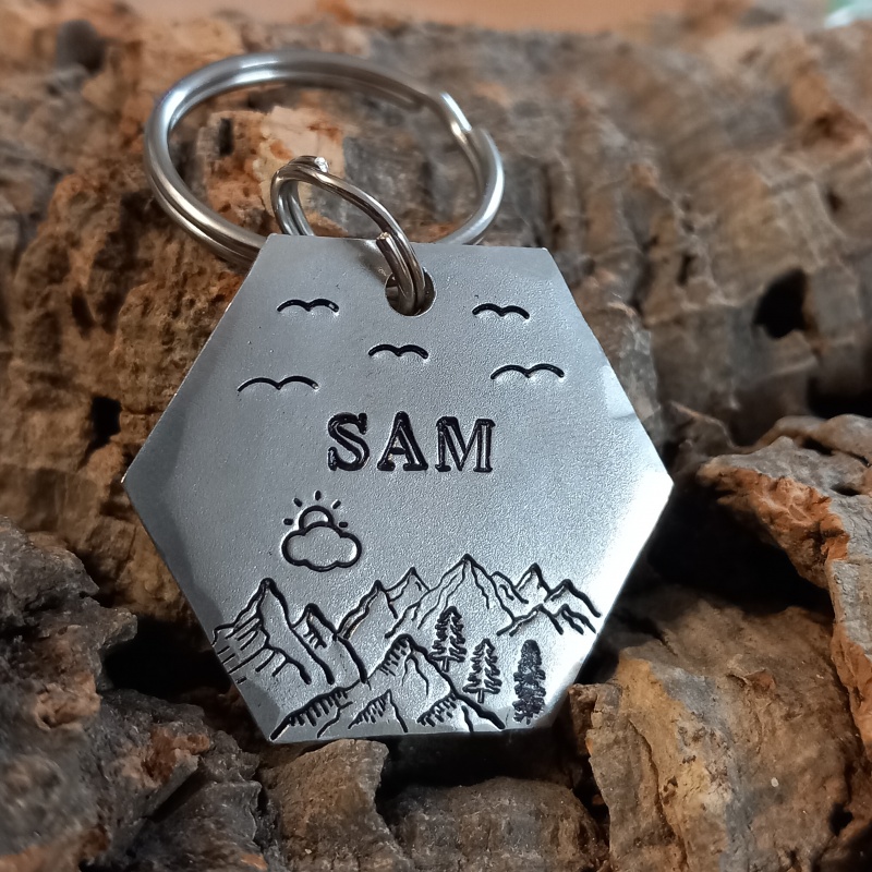 Chaque médaille est gravée à la main, pas à la machine, ce qui rend chaque pièce vraiment unique. La police est adaptée au nombre de lettres du nom de votre animal et à la taille de la médaille pour un résultat harmonieux.