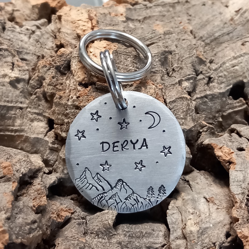 Chaque médaille est gravée à la main, pas à la machine, ce qui rend chaque pièce vraiment unique. La police est adaptée au nombre de lettres du nom de votre animal et à la taille de la médaille pour un résultat harmonieux.