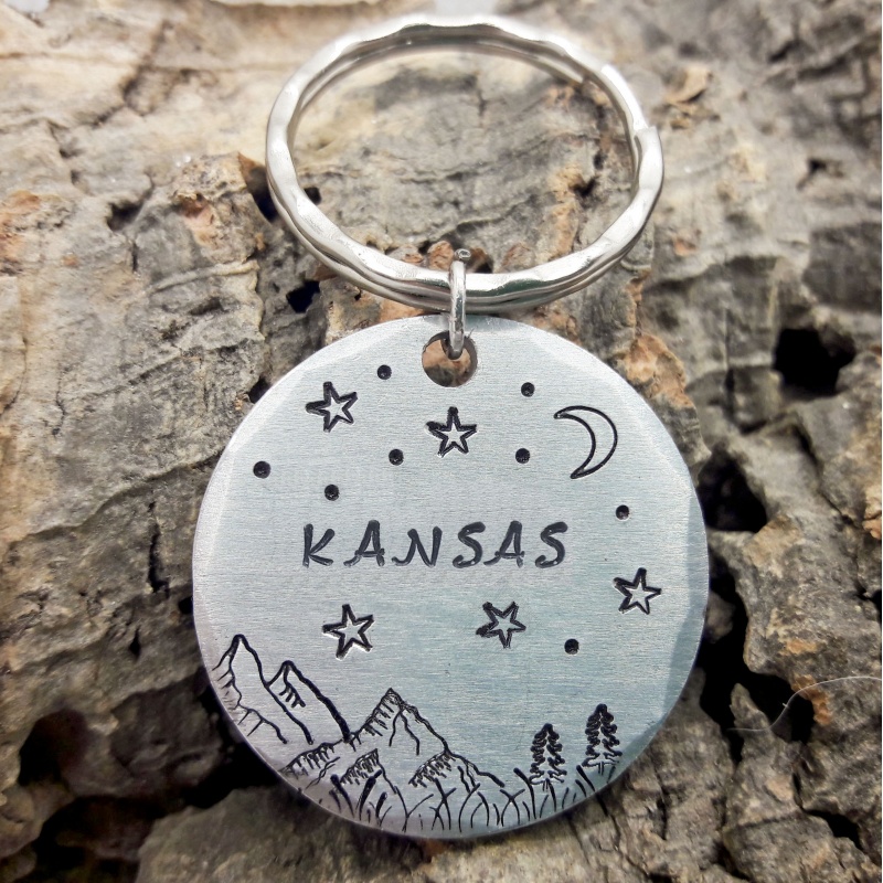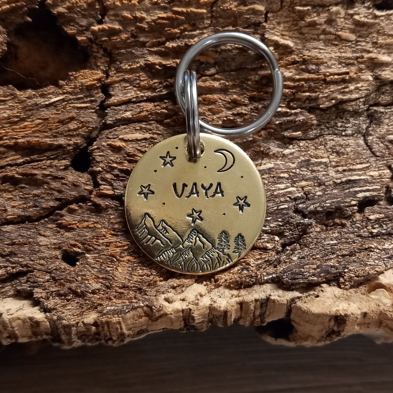 Un beau décor montagneux pour cette médaille d'identité personnalisée pour chien ou chat “ Kansas”, elle est idéale pour garder votre compagnon en sécurité au quotidien. Gravée à la main avec le nom de votre chien et votre numéro, cette médaille pour chien allie simplicité, légèreté et style.