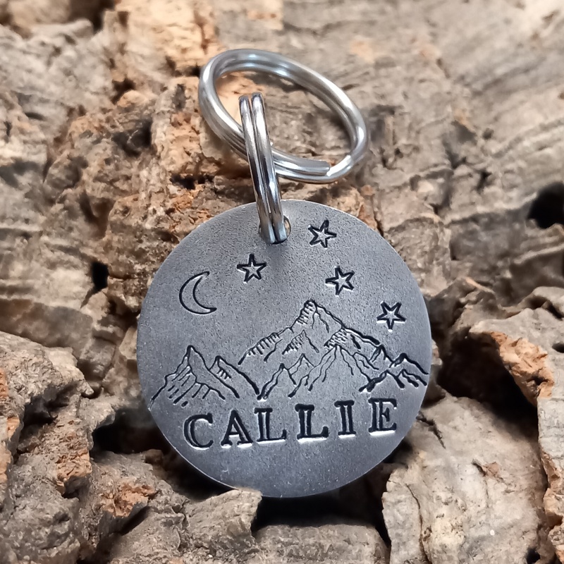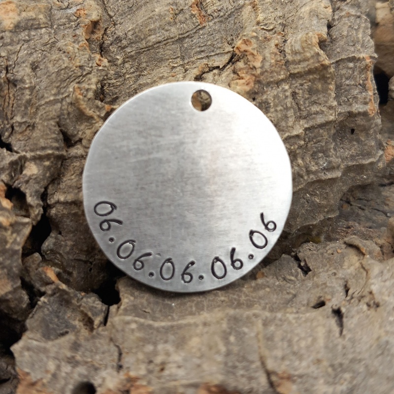 Chaque médaille est gravée à la main, pas à la machine, ce qui rend chaque pièce vraiment unique. La police est adaptée au nombre de lettres du nom de votre animal et à la taille de la médaille pour un résultat harmonieux.