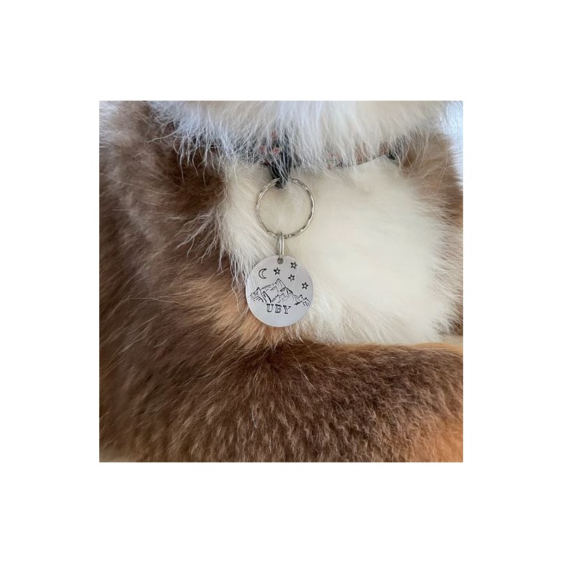 La médaille est livrée avec son anneau pour être directement accrochée au collier de votre animal.