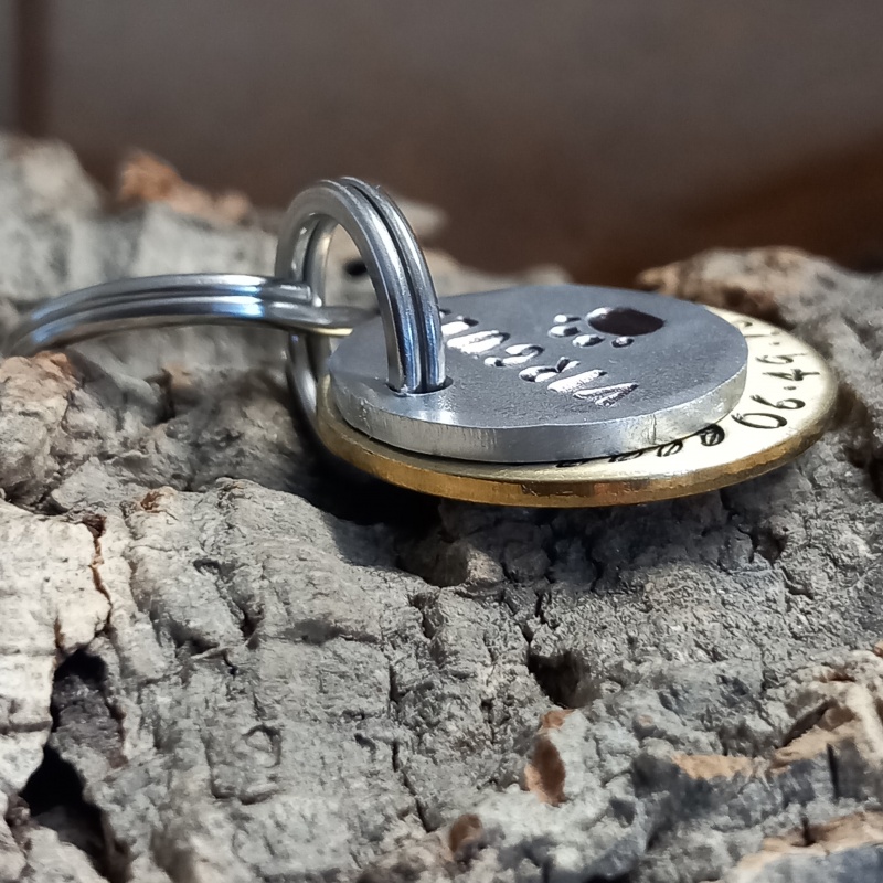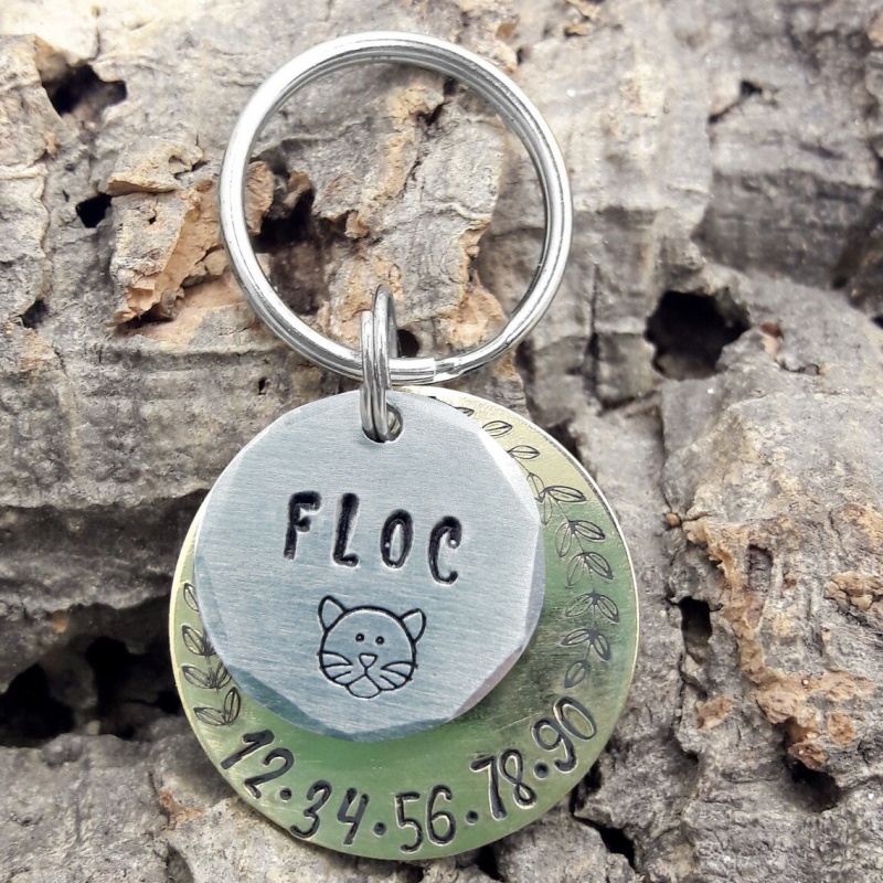 Laiton et aluminium s'allient pour cette médaille d'identité personnalisée pour chien ou chat , elle est idéale pour garder votre compagnon en sécurité au quotidien. Gravée à la main avec le nom de votre chien et votre numéro, elle allie simplicité, légèreté et style.