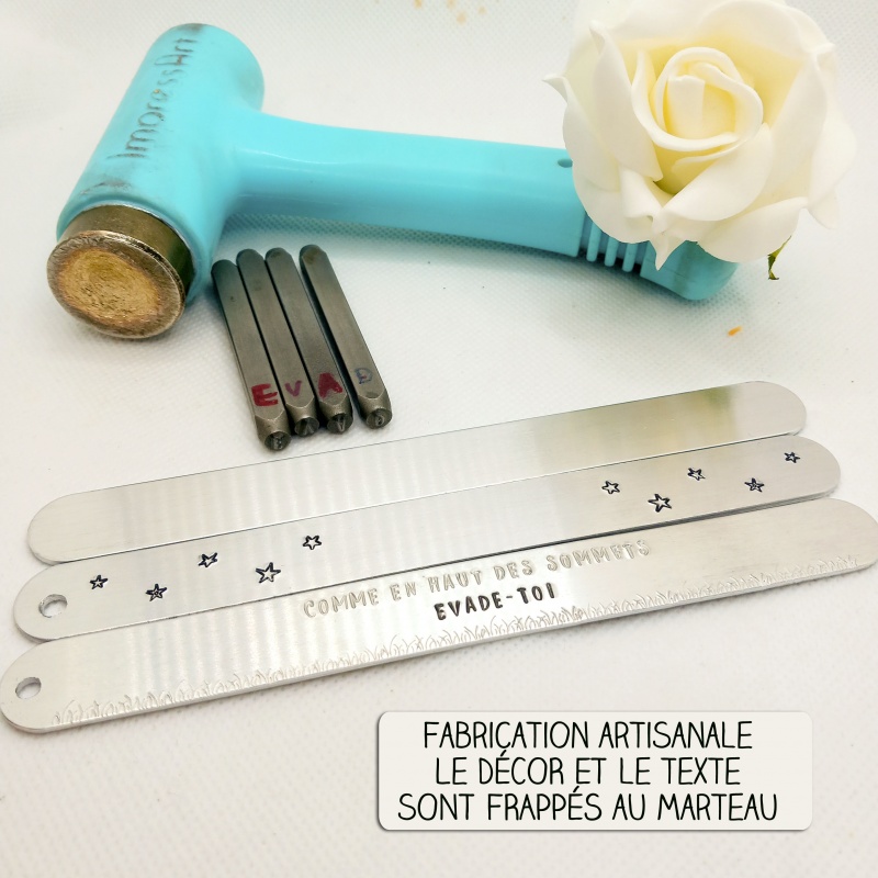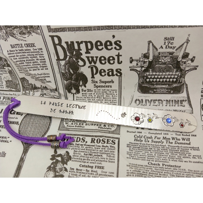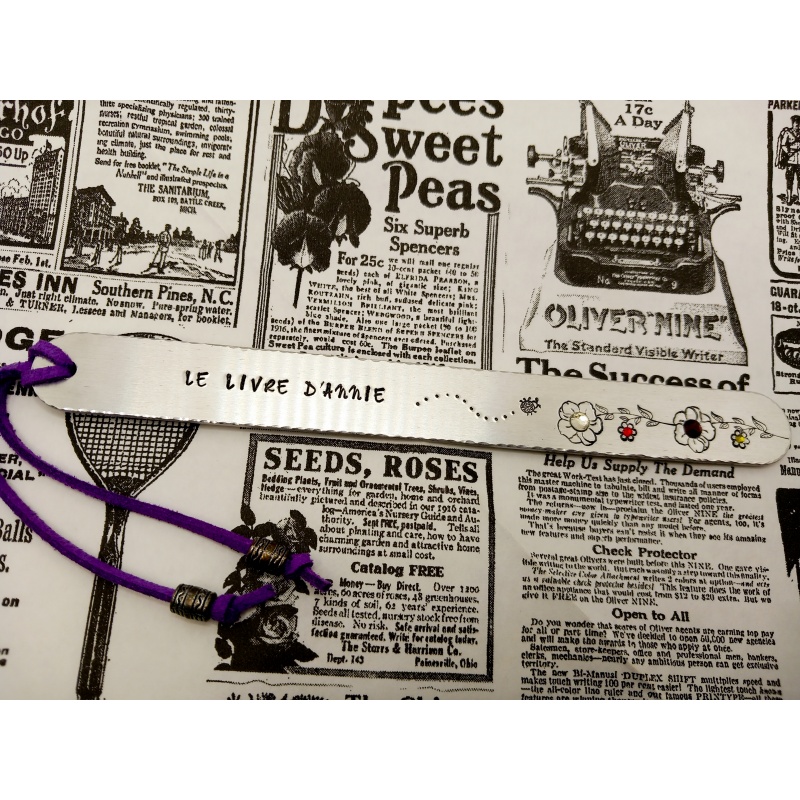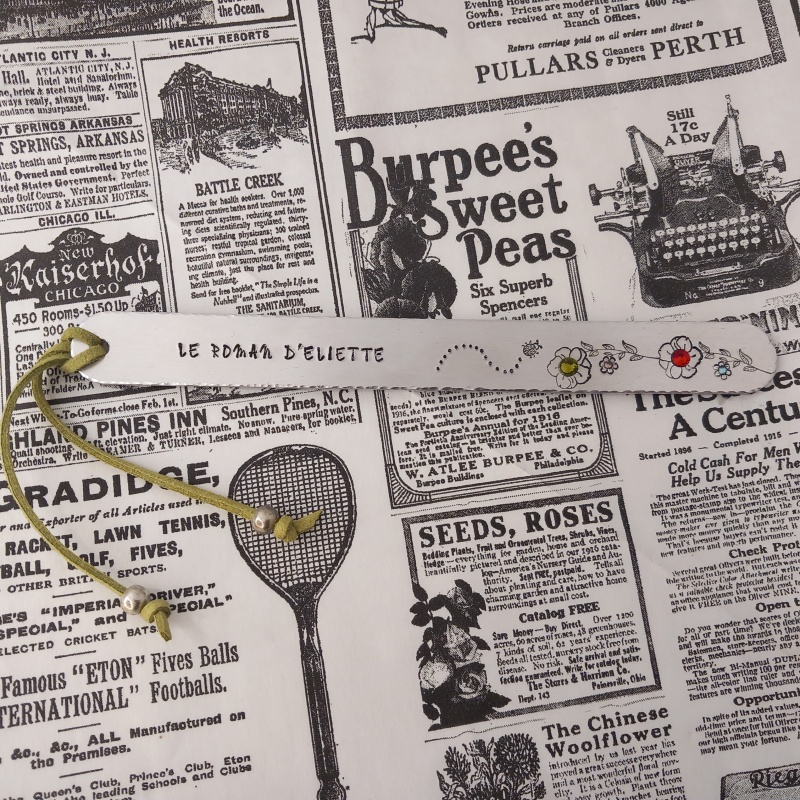 Mes marque-pages ne sont pas gravés à la machine mais poinçonnés à la main, ce qui leur confère un caractère unique.