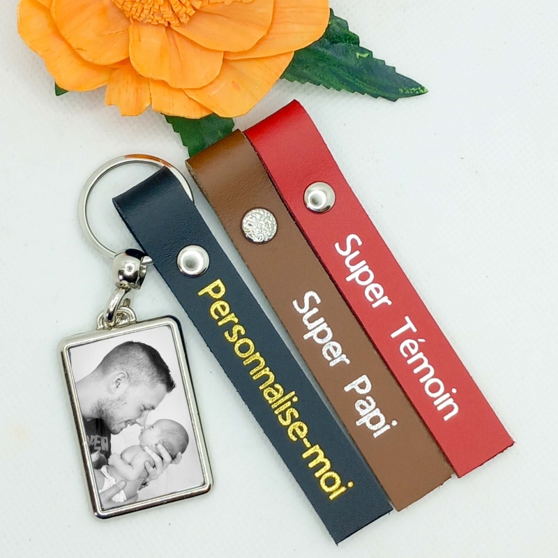 Porte-clés photo personnalisé en cuir