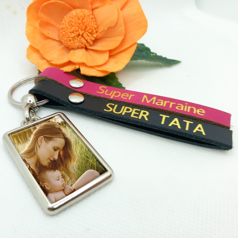 Porte-clés photo personnalisé cuir pour tata ou marraine